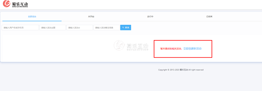 登錄到后臺(tái)以后點(diǎn)擊“立即創(chuàng)建新活動(dòng)”,根據(jù)實(shí)際情況填寫好活動(dòng)主題、活動(dòng)類型等信息后完成活動(dòng)創(chuàng)建。